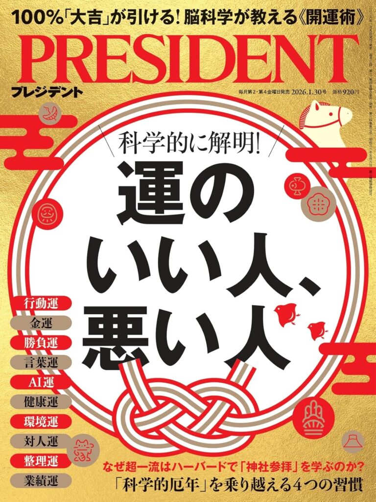 雑誌『PRESIDENT』の1月30日号に運のいい人、悪い人という特集が組まれていました。